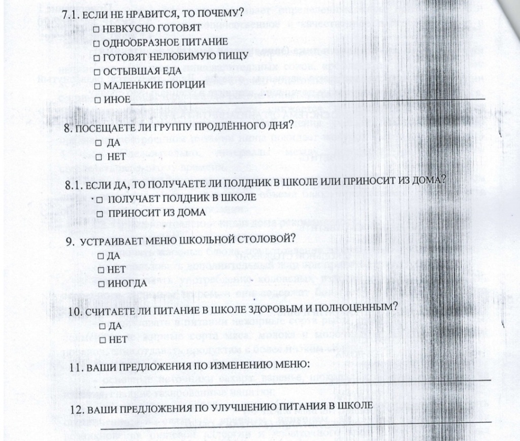 Вопрос 2 : Какие виды мяса , рыбы, и молочных продуктов используются в питании учащихся?