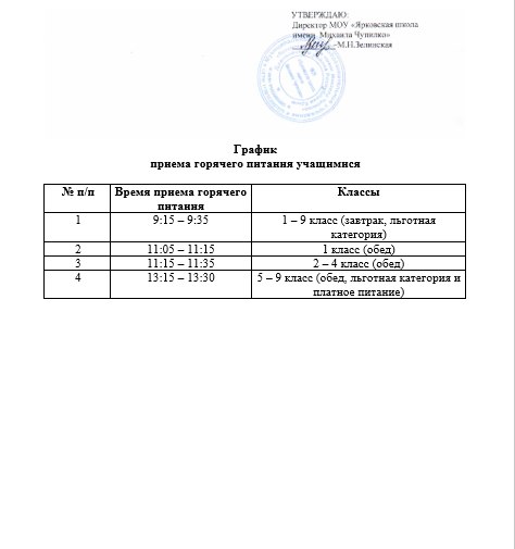 По любым вопросам организации и качества питания обучающихся МОУ "Ярковская школа имени Михаила Чупилко" вы можете обратиться к директору школы Зелинской Марине Николаевне