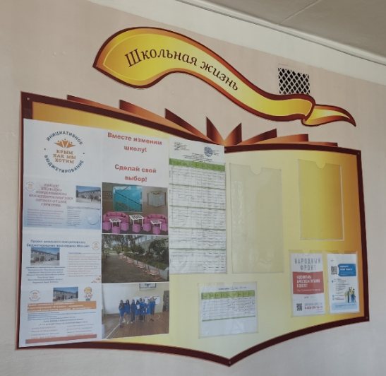 Для продвижения своих проектов обучающиеся при содействии советника директора по воспитанию Яндульской Ирины оформили яркие информационные стенды,чтобы каждый мог познакомиться с инициативой ребят по улучшению своей школы.
