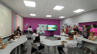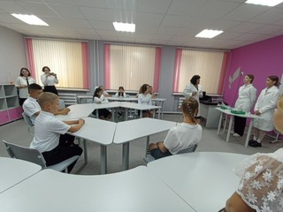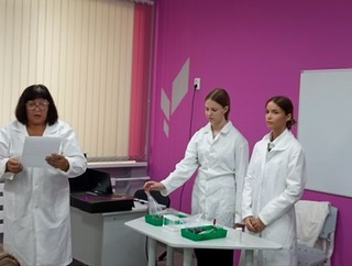 Для всех присутствующих провели экскурсию по кабинетам, в которых открыт центр. Буякевич Марина Яковлевна, наш опытный и очень талантливый учитель химии, продемонстрировала со своими обучающимися опыт по определению химического состава грунта, рассказала всем присутствующим о планах и перспективах работы центра.